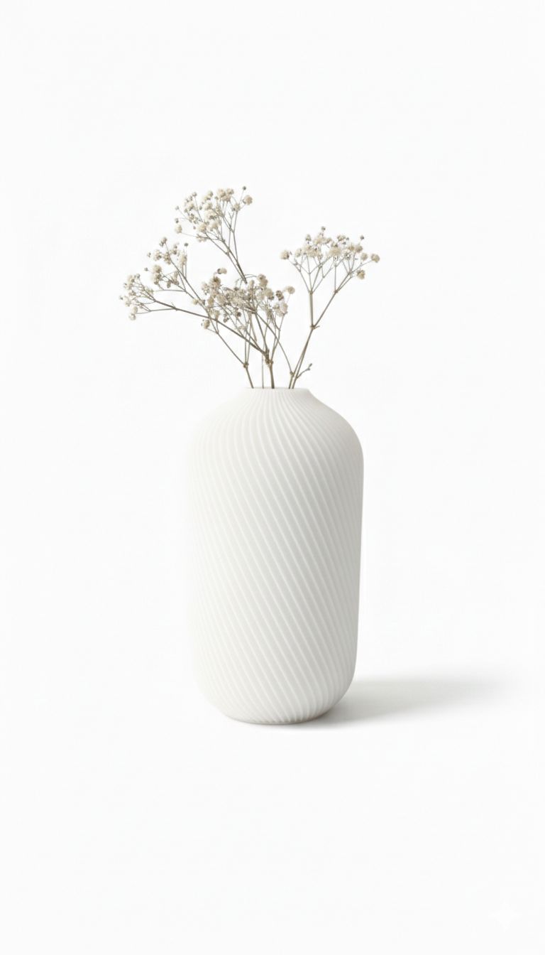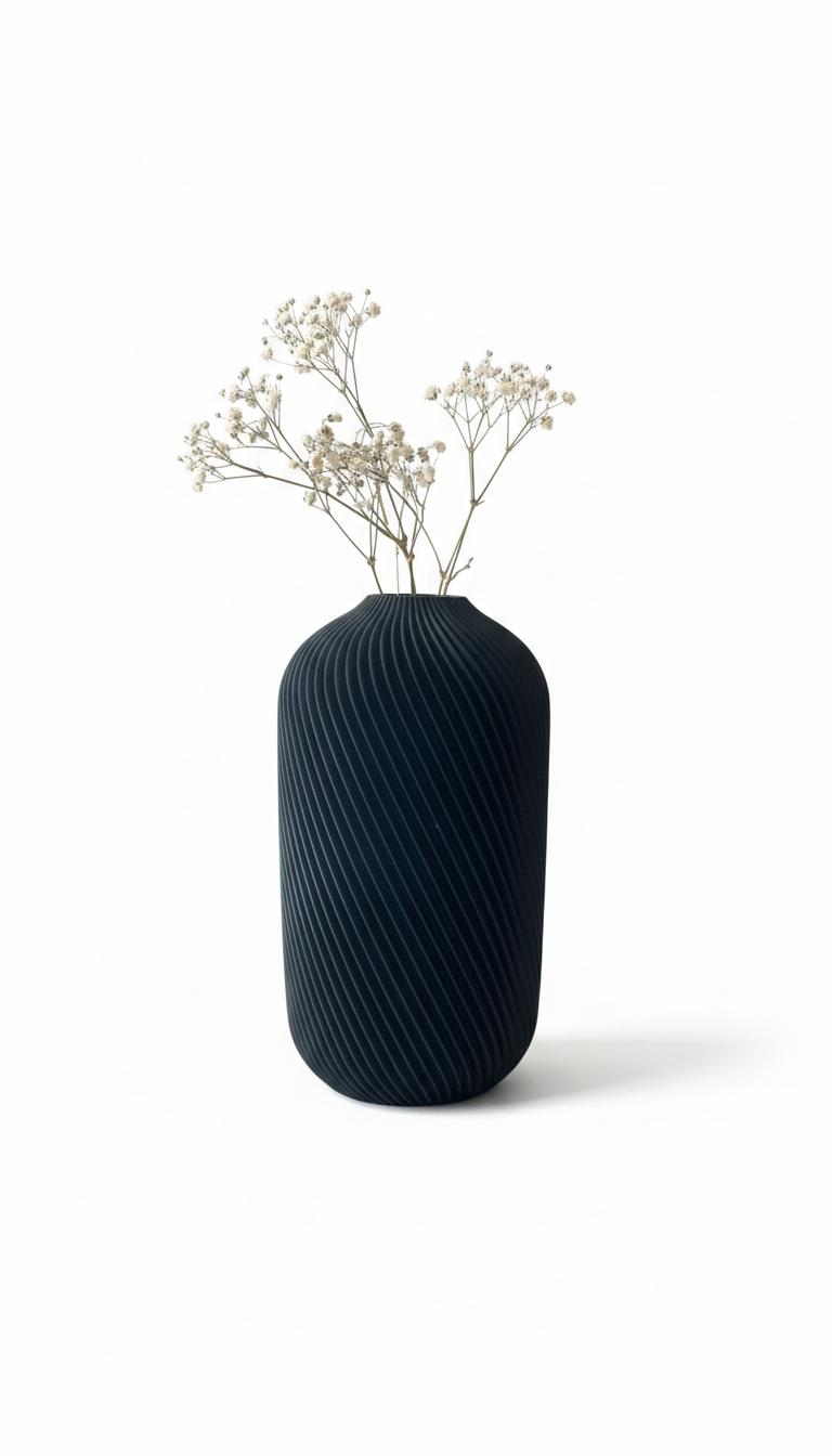 Un vaso dal carattere essenziale e contemporaneo, perfetto per ambienti moderni e minimal. Realizzato in PLA stampato in 3D, si distingue per la sua forma slanciata e per la raffinata texture a linee diagonali, che dona movimento e profondità alla superficie.
